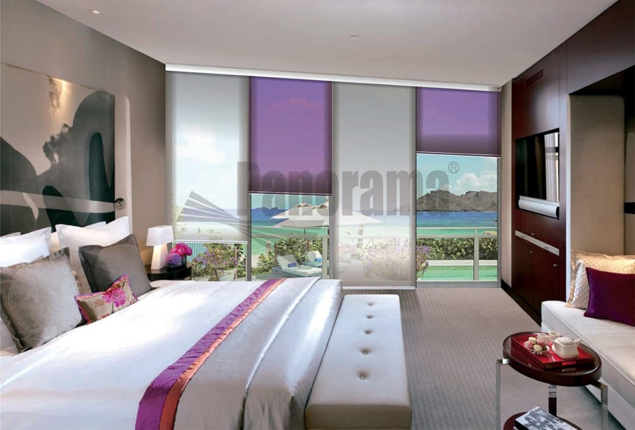 Diseño moderno, elegante y versátil, que se adapta de manera impecable a cada ambiente; ideales para espacios amplios con ventanas de techo a piso o puerta de grandes dimensiones. La variedad de tejidos de esta línea hace de este un producto que define tendencias. Está compuesto por un sistema de lienzos verticales en tela que se deslizan suavemente a lo largo de canales paralelos en un riel de aluminio. Estos canales ofrecen diferentes opciones de apertura, que garantizan un óptimo manejo del paso de la luz. Tiene diferentes tipos de accionamiento; manual por medio de cordel o bastón y motorizado con control remoto o switch a pared.